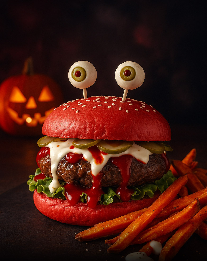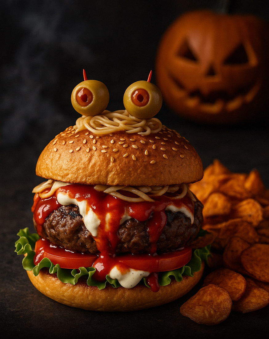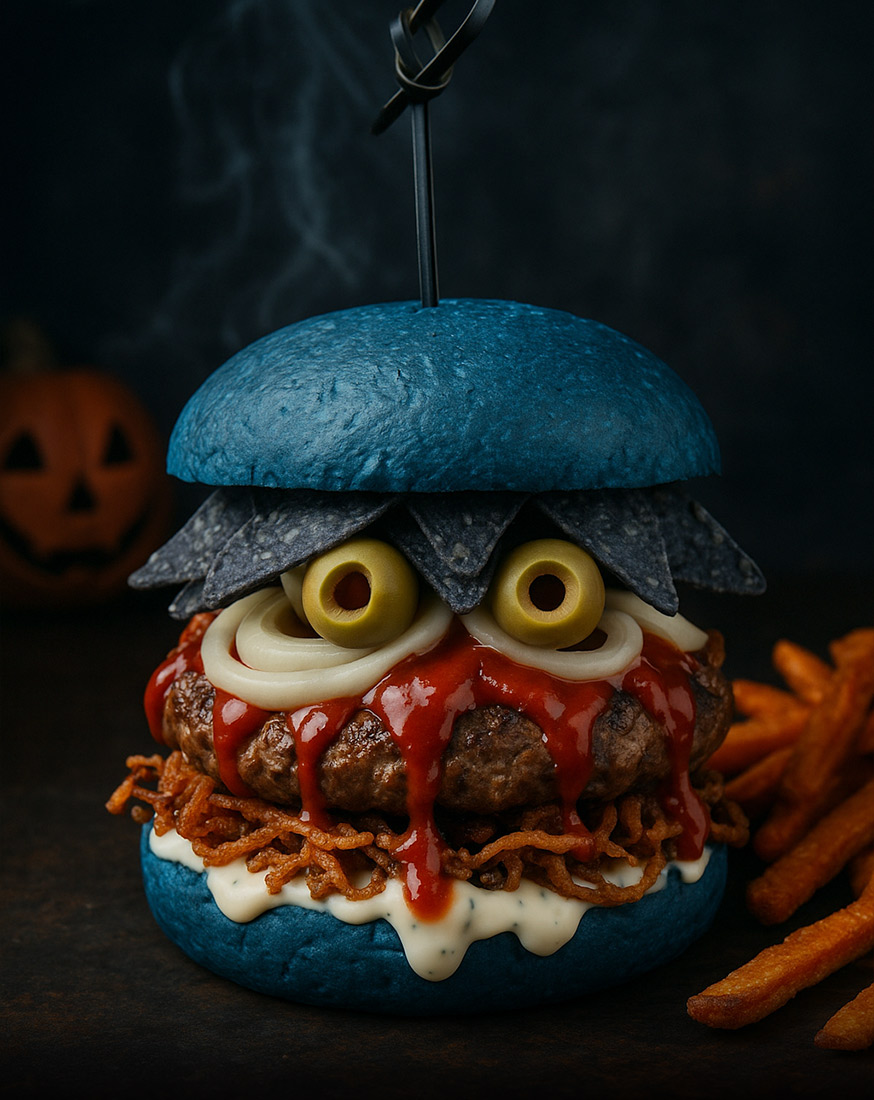 Ob für eine Halloween Party, ein BBQ mit Freunden oder ein kreatives Dinner zuhause – Burger lassen sich spielerisch in schaurig-schöne Kreationen verwandeln. Mit feurigen Saucen für den „Bloody-Effekt“, Mozzarella-Augen oder Olive-Spinnen wird aus einem einfachen Burger ein Hingucker, der perfekt in die gruselige Jahreszeit passt.