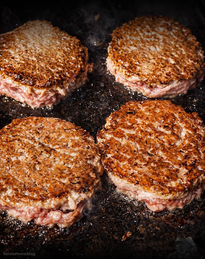 - Verarbeitung: Das Fleisch wird grob gewolft und anschließend sauber zu runden Patties gepresst, um Struktur und Saftigkeit zu bewahren.