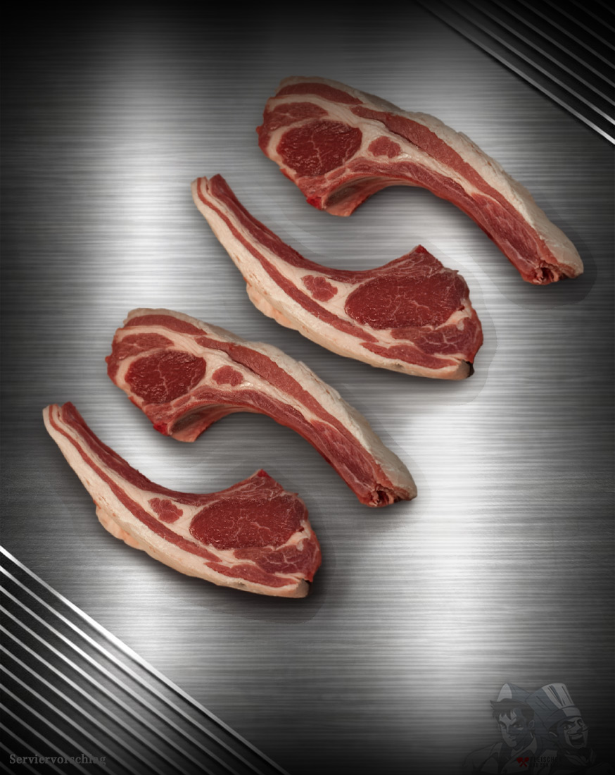 - Zuschnitt: Kotelett aus dem Lammrücken, am Knochen geschnitten