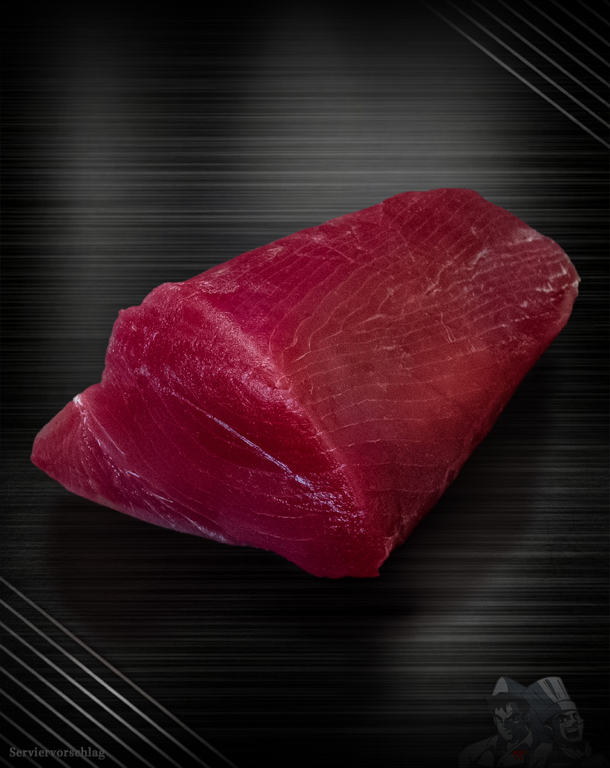 Zubereitungstipp: Thunfisch ist ein sehr hitzeempfindlicher Fisch, daher sollte er nicht zu lange gekocht oder gegrillt werden. Am besten serviert man ihn „medium rare“ – außen leicht angebraten, innen aber noch zart und rosa. Gewürzt mit etwas Salz und Pfeffer, dazu vielleicht ein Spritzer Zitrone oder eine feine Kräuterbutter, wird dieses Stück Fisch zu einem wahren Genuss.